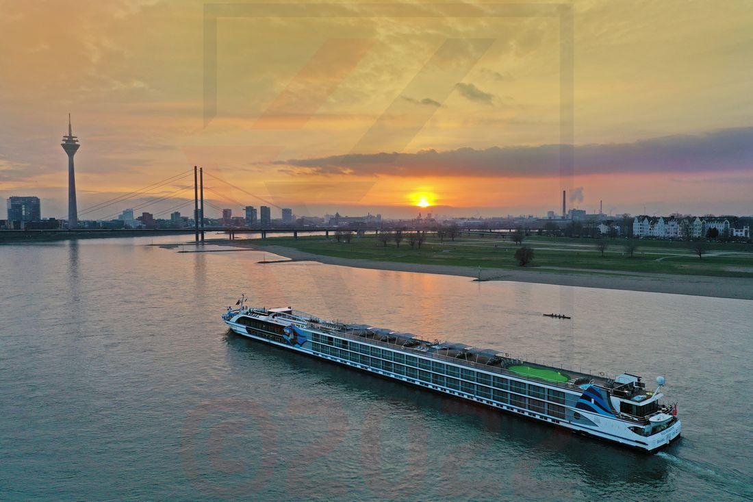 Zur Abfahrt in Düsseldorf zeigt sich das Wetter erstaunlich schön. Während über den Norden von Deutschland ein heftiges Orkantief zieht, genießen wir an Bord der VIVA Moments den Sonnenuntergang in Düsseldorf und rund vier Stunden Später die beleuchtete Altstadtkulisse der Stadt Köln.